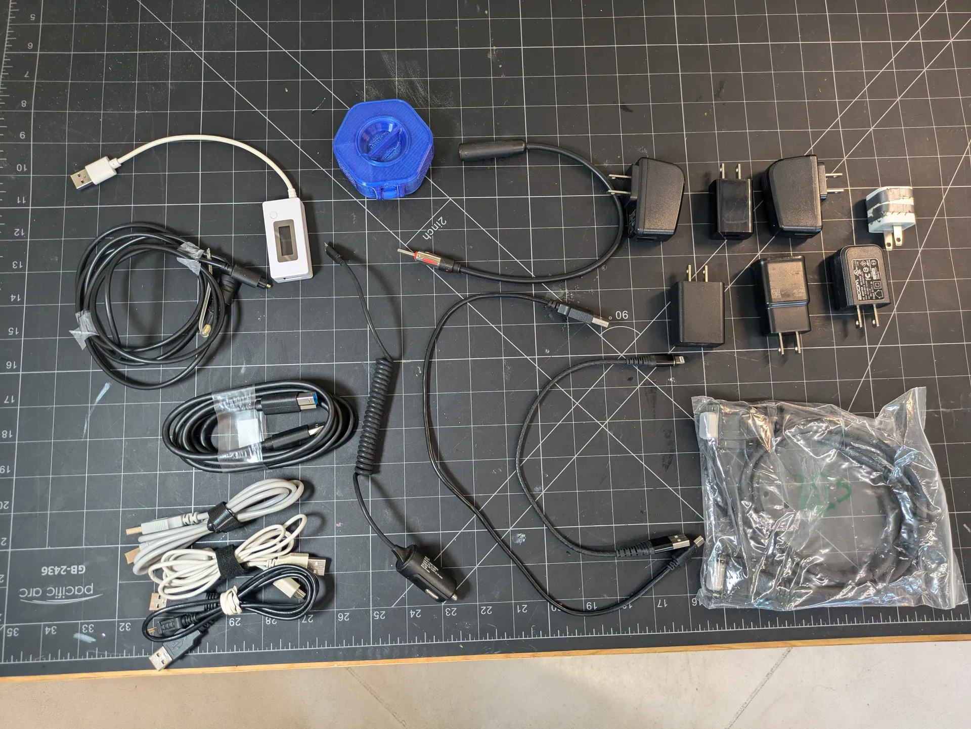 - Various usb cables and wall warts (aka dc power plugs). I have a lot more than this! But I culled the weaker and smaller of the herd.