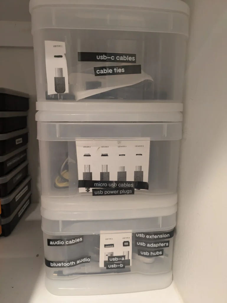 I keep my cables in my ‘man-closet’ with pictures of the adapter types on the front so I can remember which type is which lol. You can tell how empty these are compared to how they used to be.